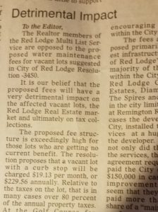 Excerpts of “Detrimental Impact’ in Letters to Editor – Carbon County News – 10-5-2017 Issue. By the The Realtor Members of the Red Lodge Multi List Service.