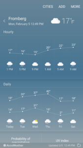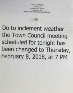 It is our understanding the TOF 2.5.2018 Council Meeting Scheduled for Tonight has been Cancelled! Potentially rescheduled for Thursday 2.8.2018. Pictorial documentation below. As hearty Montanans, we don’t feel the current local weather forecast pictured below warrants the cancelling of this meeting. Again, these types of notices should be posted on the Official Town website! http://fromberg-mt.gov/