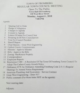 “TOWN OF FROMBERG * REGULAR TOWN COUNCIL MEETING * Open To The Public