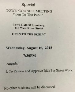 “Special Town Council Meeting – Open To The Public – Town Hall Of Fromberg – 118 West River Street- OPEN TO THE PUBLIC