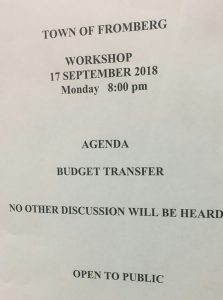 There is no information identifying point of contact, nor physical location for the “TOWN OF FROMBERG”. Public Notices have specific parameters which must be met. This Notice again has a different format and font size.