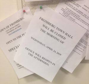 Haphazard to say the least. More evidence of unprofessionalism practiced at Town Hall. The new clerk is out of the office quite often. Her timesheets and payroll amounts should be closely monitored.  Town Hall office closed again all morning. With two Special Meetings tonite, along with regular tasks, one would presume it would have been prudent to be in the office the entire day.
