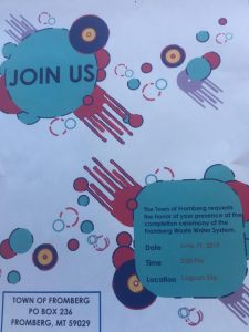 6.19.2019 2PM Fromberg Wastewater System Completion Ceremony At Lagoon SiteadminJune 13, 2019Uncategorized1 Comment This announcement unavailable at: http://www.fromberg-mt.com/news