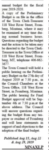 The following was published under “Legals” in the Carbon County News. Vol .99 N.33 on Thursday August 15, 2019. tfa notes no budget meetings nor budget workshops Open to the Public have been held during this calendar year! The Public has a right to know and to participate!