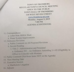 Why isn’t said Agenda posted on the TOF website ie: http://www.fromberg-mt.com/Agenda?