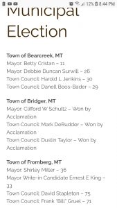 The Carbon County Elections Administrator Macque Bohleen thinks all municipal election results will be in by 9:00 PM tonite. tfa will post them here as soon as they are available.