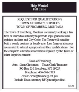 It also seems ineffective. tfa notes the town website address has not been updated either. Please view tfa’s previous post re: Advertisement foe Town of Fromberg Attorney at the following link: http://the-fromberg-advocacy.com/advertisment-for-fromberg-town-attorney-to-run-7-times-in-the-carbon-county-news/