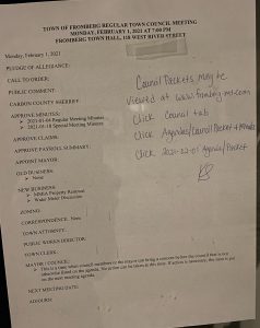 The TOF link mmentioned in said agenda follows: http://www.fromberg-mt.com/Agendas-CouncilPackets-Minutes. Date and time stamp available upon request.