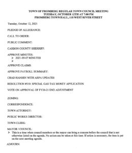 Please view the entire 10.12.2021 Council Packet information at the following link: http://www.fromberg-mt.com/Agendas-CouncilPackets-Minutes