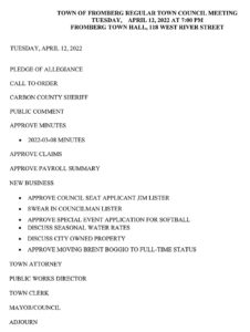 TOF 4.12.2022 7PM Regularly Scheduled Council Meeting AgendaadminApril 9, 2022Uncategorized Expandable Google docs link follows: https://drive.google.com/file/d/12BmuLSey69EjS-UXD2dwttR3yHLML7Bw/view?usp=drivesdk