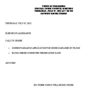 TOF Special Town Council Meeting Agenda: July 7, 2022 * 117 West River Street * Fromberg, MTadminJuly 6, 2022Uncategorized Expandable Google Docs link follows: https://drive.google.com/file/d/1Ubd9vqZwhuQZaSLYFwgCGSXYZv8Ks4wt/view?usp=drivesdk