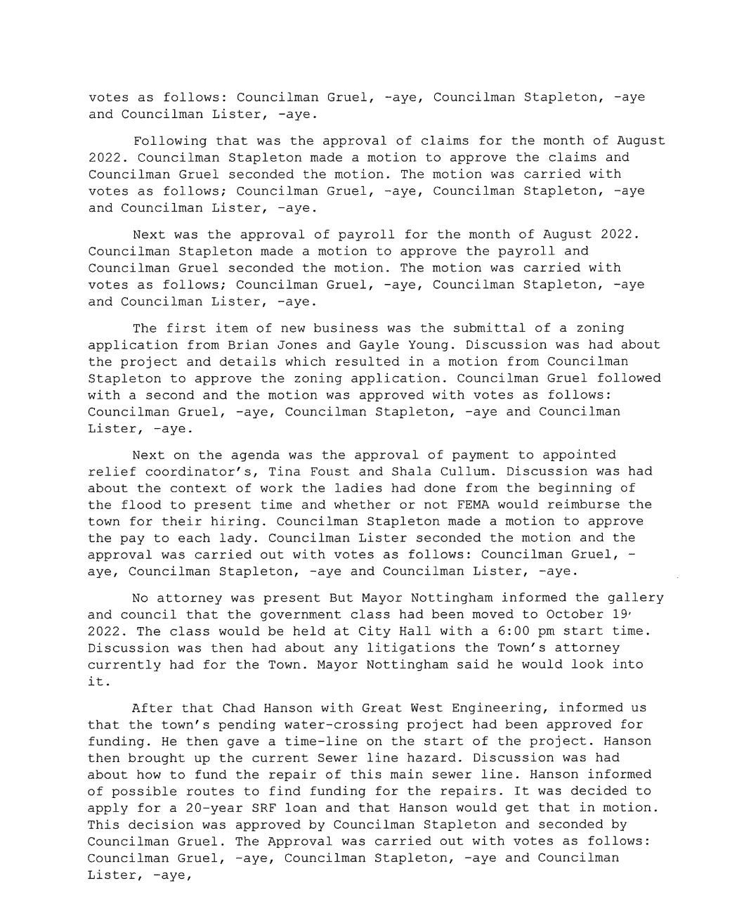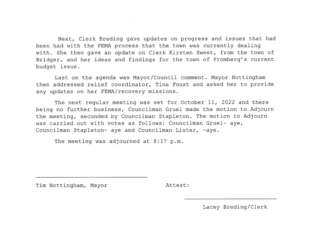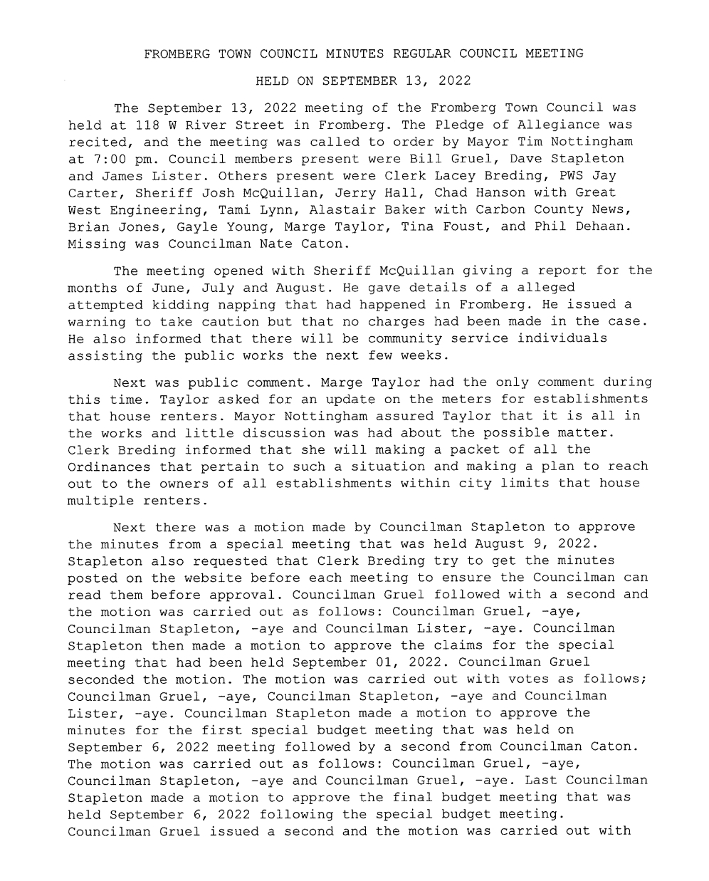 TOF 9.13.2022 Regularly Scheduled Town Council Meeting Minutes