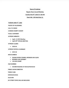 TOF 5.9.2023 REGULARLY SCHEDULED TOWN COUNCIL MEETING AGENDA – 7PMadminMay 6, 2023Uncategorized Expandable Google Docs link follows: https://drive.google.com/file/d/1LIVodRD2BlPm26sALPzpoQSMNsDNuEwc/view?usp=drivesdk