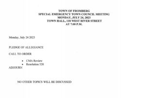 This item should have added to the 8.8.2023 TOF Regularly Scheduled Council Meeting, thereby saving unnecessary funds which must now be paid to Councilmen and Mayor for their attendance at the above specified meeting.