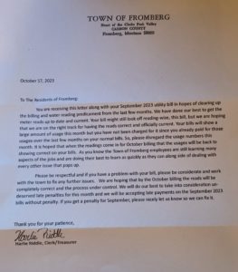 The burden of accuracy, as well as appropriate employee demeanor, falls solely upon Town of Fromberg employees. Not the Public, as they provide funding for TOF’s office through their tax dollars. Not TOF utility users, who have the right to question each and every discrepancy on their utility bills.