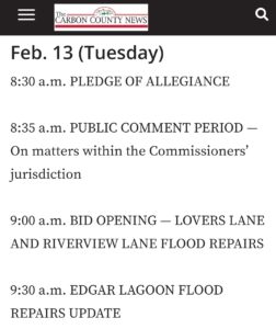 Mayor Nottingham Made No Mention Whatsoever of the Following During TOF’s 2.12.2024 Council MeetingadminFebruary 16, 2024Uncategorized1 Comment The following information is sourced from Carbon County News at the link below: https://www.carboncountynews.com/news/carbon-county-commissioners-agenda/article_5e956b6a-c486-11ee-9eac-3f04f1ac70f4.html