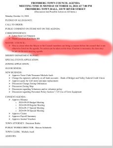 TOF 10.14.2024 Regularly Scheduled Town Council Meeting Agenda: