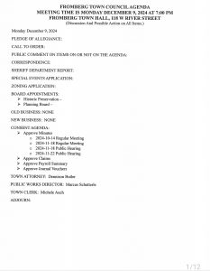 TOF Regularly Scheduled Council Meeting Agenda November 18, 2024 * 7:00PM