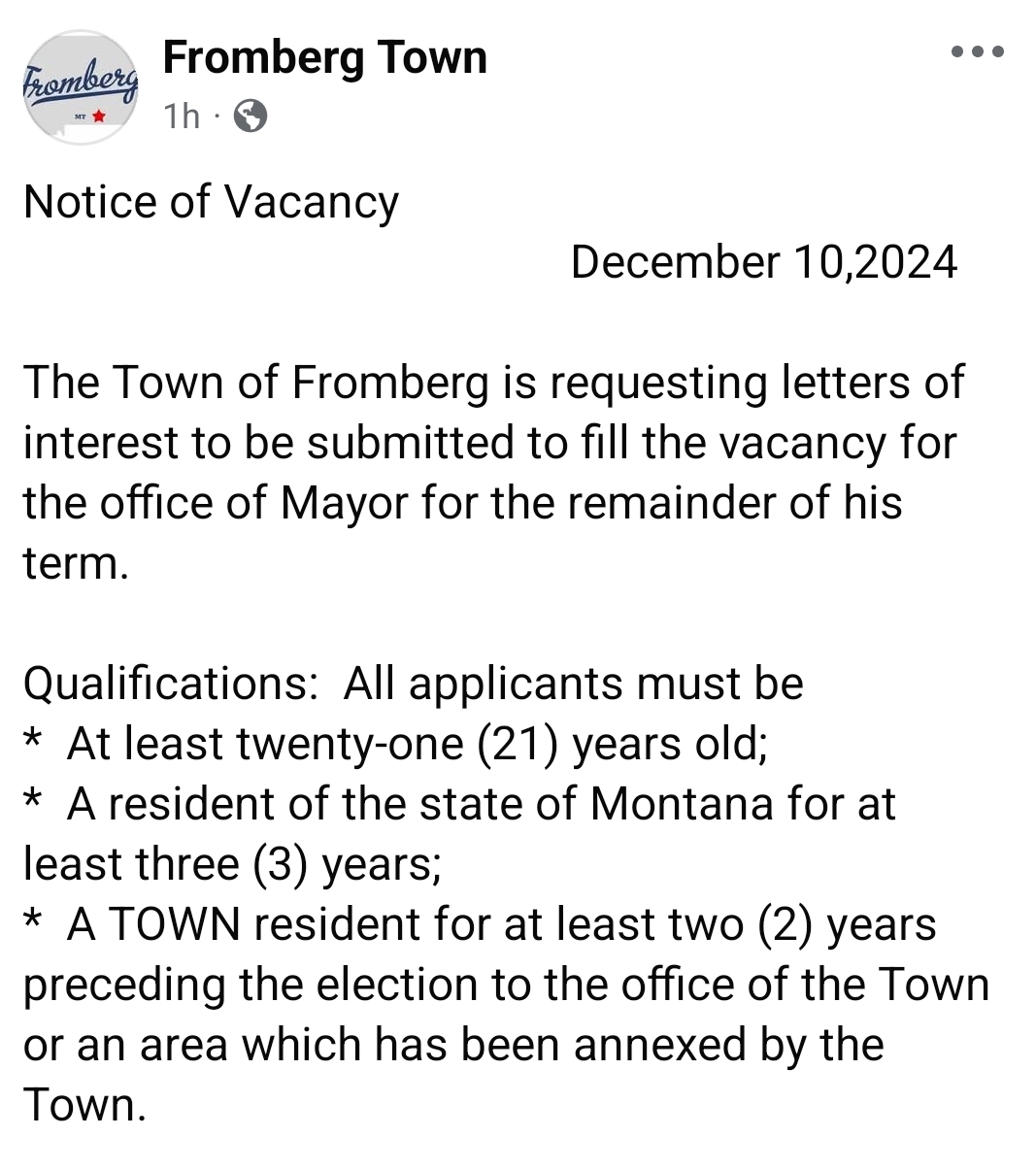Immediate Vacancy for TOF Mayoral PositionadminDecember 11, 2024Uncategorized2 Comments https://m.facebook.com/story.php?story_fbid=pfbid02CMFGZSdAYwujchVfbQEVPq7ipu4cHovg4SoAhx1r1vR5MPhpUYiT88BwPwnxwMsil&id=100082089201303